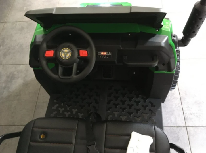 This Gator Farm Truck Tractor XL electric kids’ car is super cool and sturdy. The green and yellow all-terrain vehicle has four motors in the back. The trunk is equipped with a tilt function, making it easier for children to unload! The truck is suitable for children aged 1 to 6.