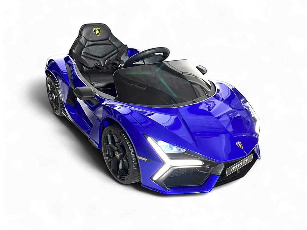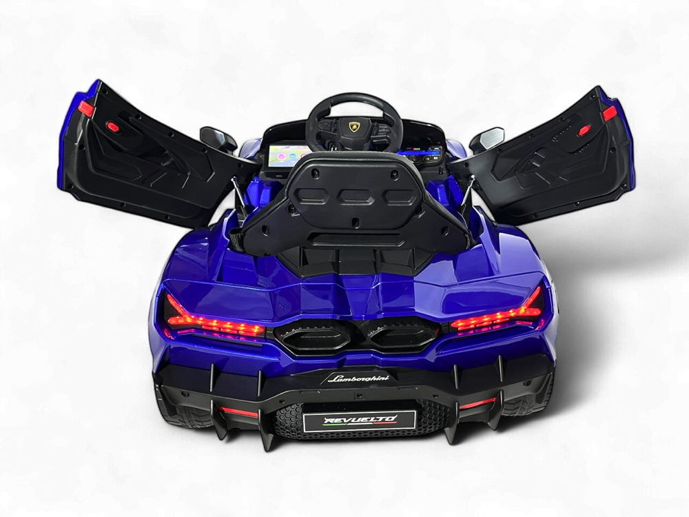 De Lamborghini Revuelto elektrisch aangedreven auto voor kinderen 12 volt in het blauw is het perfecte cadeau voor avontuurlijke kinderen. Bestel nu bij Kinderauto elektrische ® voor snelle leve