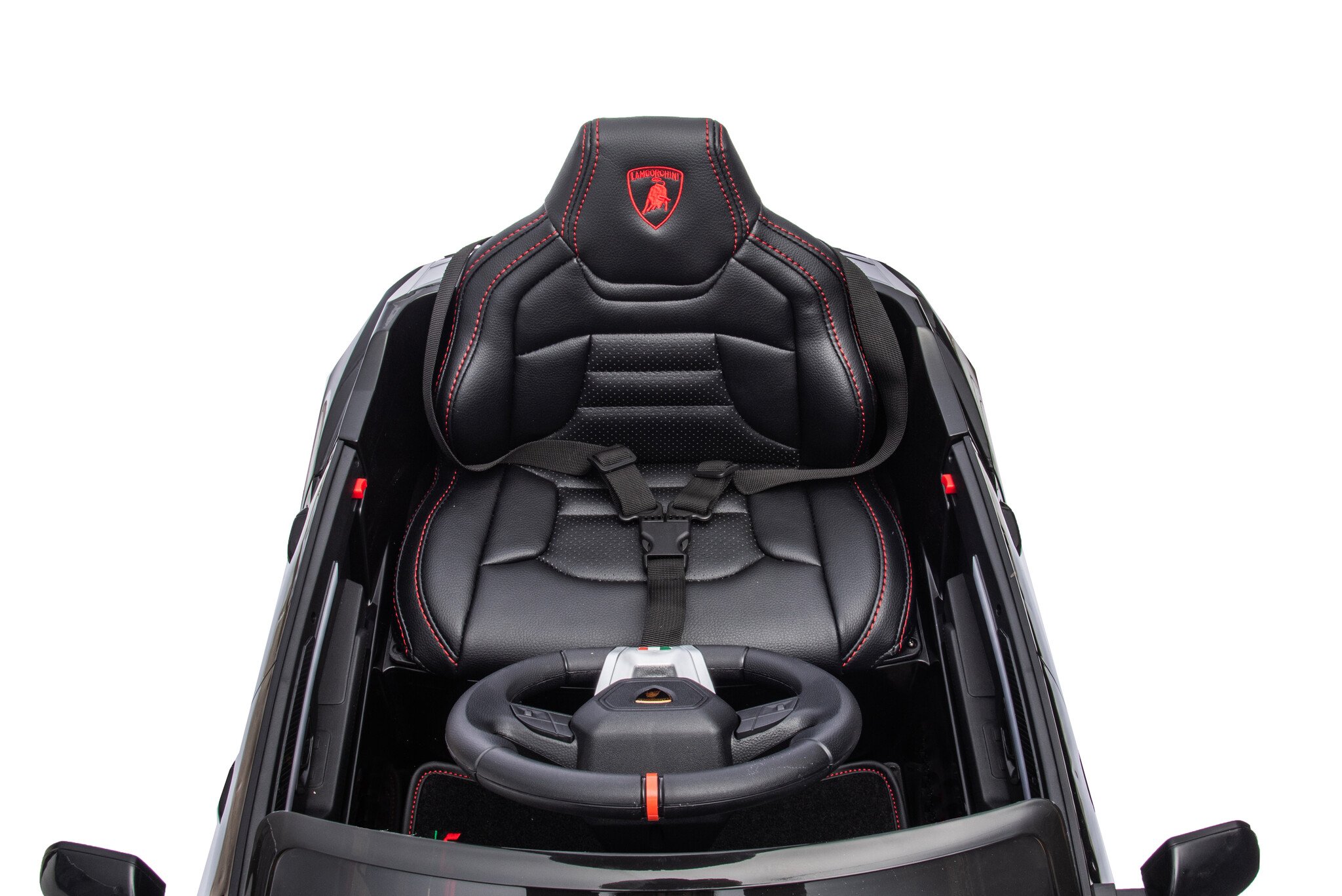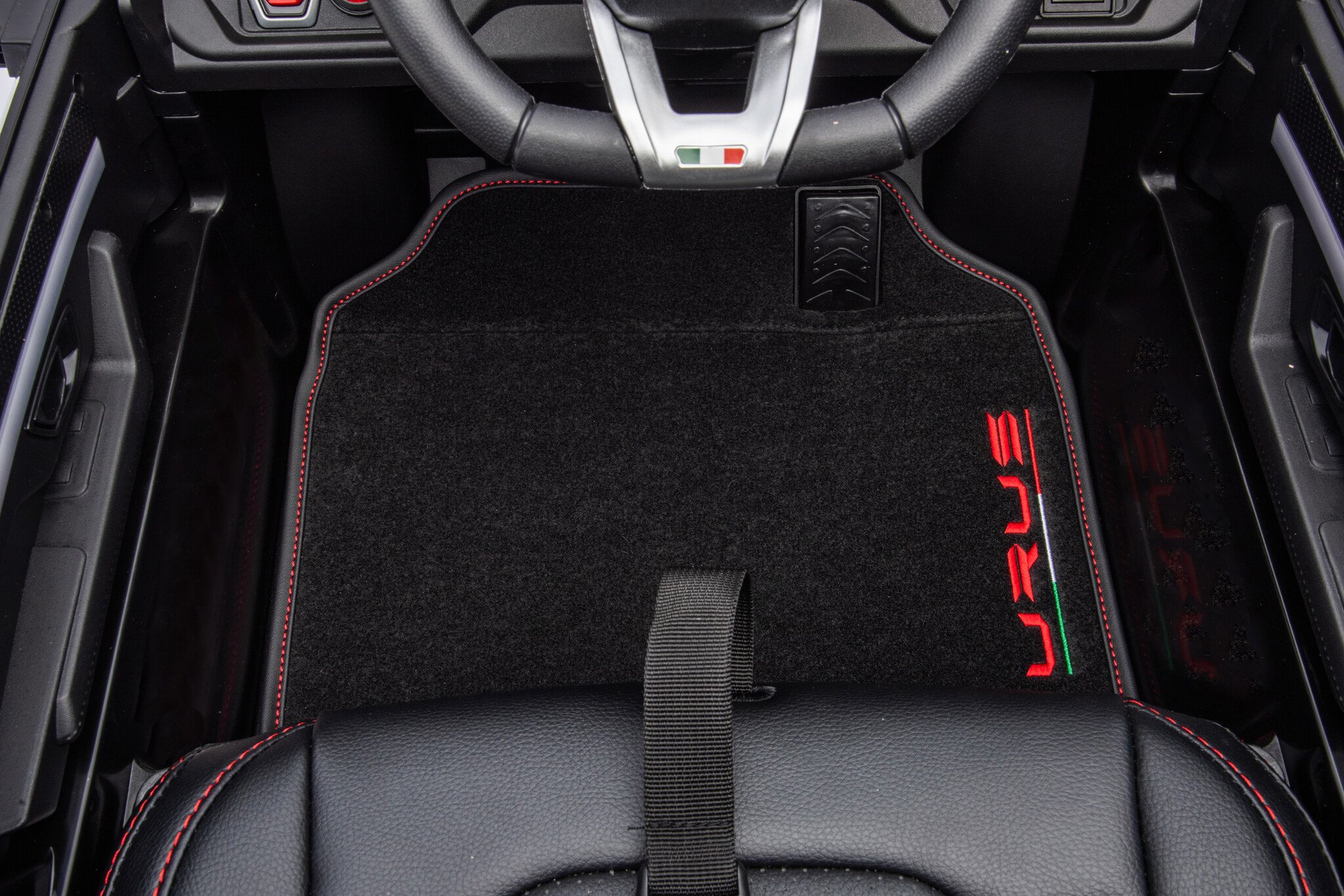 The car is equipped with 2 powerful 12 volt motors and is therefore able to drive on grass or unpaved surfaces. Furthermore, this car has 2 real doors, black leather seat, footmat, headlights and you get the option to play your own music through. a USB, mini SD and MP3 input. Since the car is equipped with a “soft start”, the children do not feel any shock when accelerating.