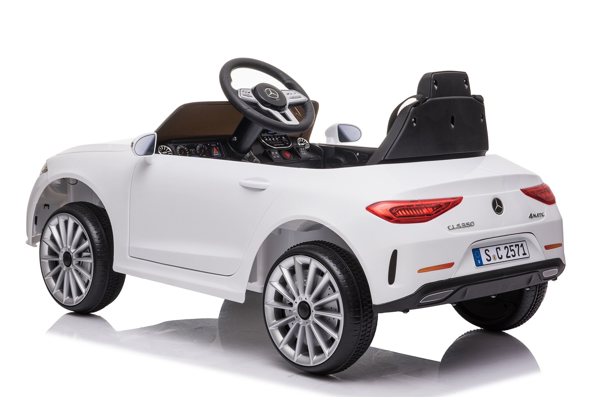 This small and awesome Mercedes-Benz CLS 350 AMG electric children’s car is manufactured under license from Mercedes-Benz. With its roaring sounds, lights, and a powerful horn, kids will love it! This compact Mercedes CLS 350 AMG battery-powered children’s car is suitable for children aged 1 to 3.5 years.