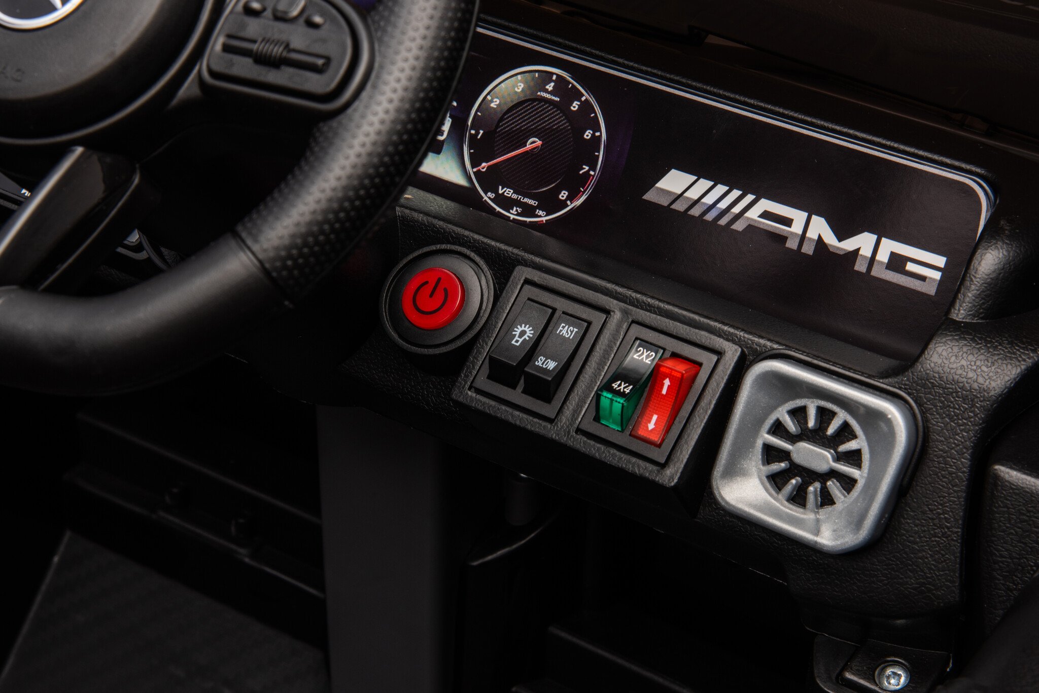 The Mercedes G63 AMG Cabrio 12V Children’s Car in black is a very popular model among children and adults. This Mercedes Benz G class electric children’s car with red accents will make a huge impression on your child in the neighborhood! This Mercedes children’s car is suitable for children from 1 to 4 years old.