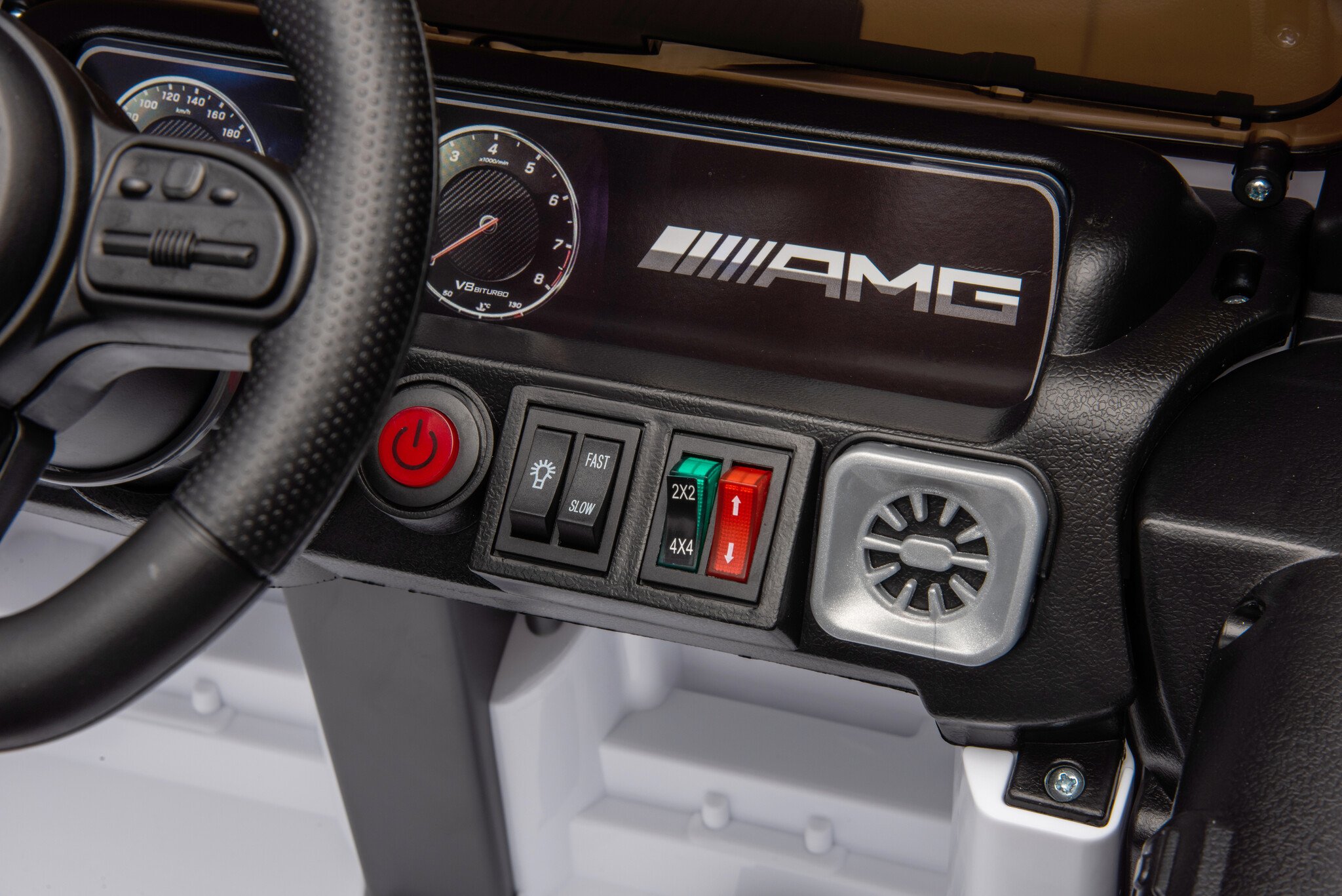 The Mercedes G63 AMG Cabrio 24V Children’s Car in black is a very popular model among children and adults. This Mercedes Benz G class electric children’s car with red accents will make a huge impression on your child in the neighborhood! This Mercedes children’s car is suitable for children from 1 to 4 years old.