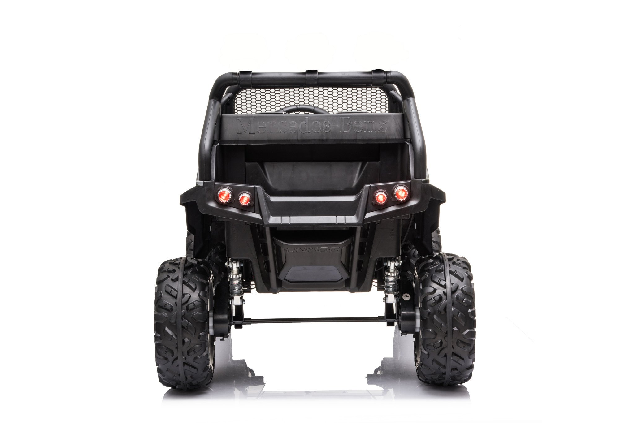 Parents can fully control the car, set the speed and block the car remotely if necessary. With its 12 volt power and 4 powerful 30 Watt drive motors, this car is able to drive over grass and unpaved ground. The interior of the Mercedes unimog is finished with a beautiful leather seat and belt. Furthermore, the car has a real suspension, rubber tires and various light and sound functions. The soft start system ensures that children do not feel any shock when accelerating. Extra comfortable and safe!