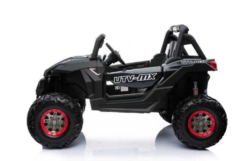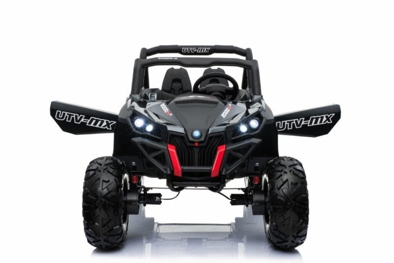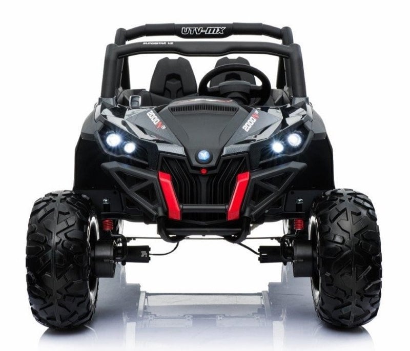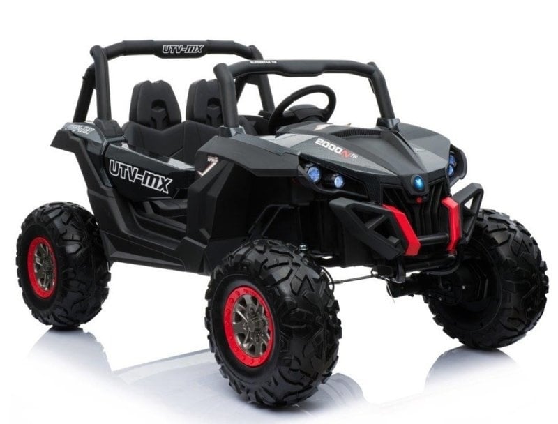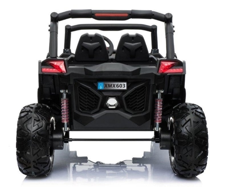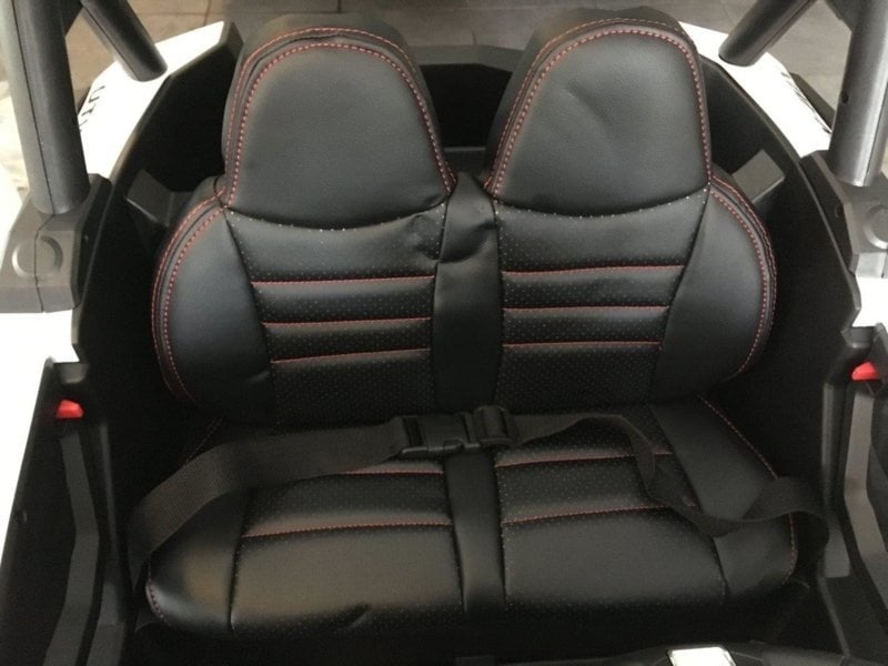 This cool two-person beach buggy has a real 4×4 drive and leather upholstery. This white buggy not only has the looks, but also the latest technical features. Because this quad contains not one but two 12V7ah batteries, it has real muscles!