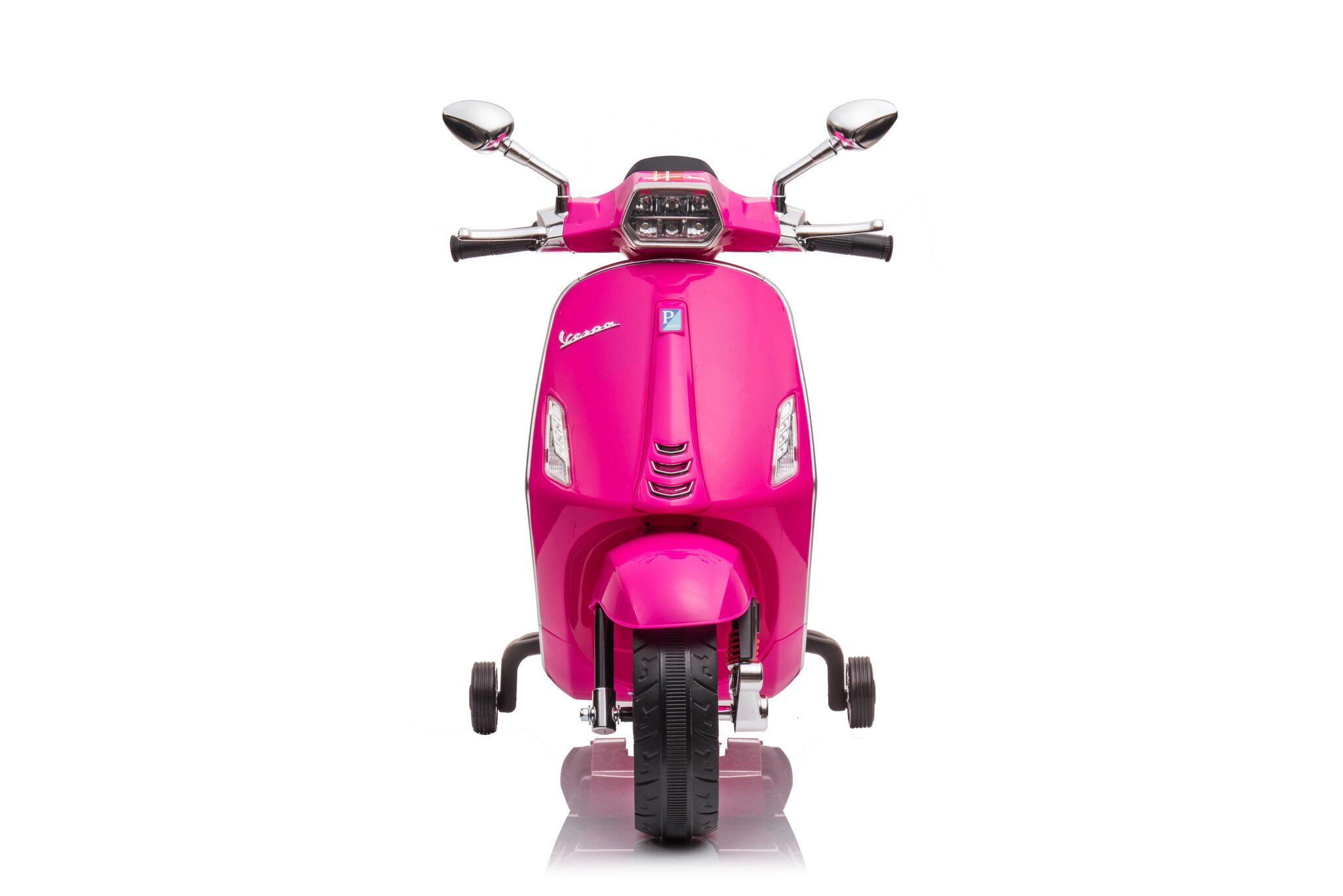 This Vespa electric scooter for children is equipped with a powerful 6-volt motor and reaches a top speed of up to 4 km/h. The Vespa scooter also features a horn, music, and LED lighting. Children can play their own music using the built-in MP3, mini SD, and USB ports. The training wheels make the scooter stable and easy to steer.